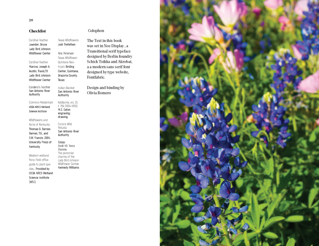 An Exhibition catalouge is based on the Local Wildflowers of Texas is a small sample of the exploration and research done to capture the natural beauty of flora we take for granted.